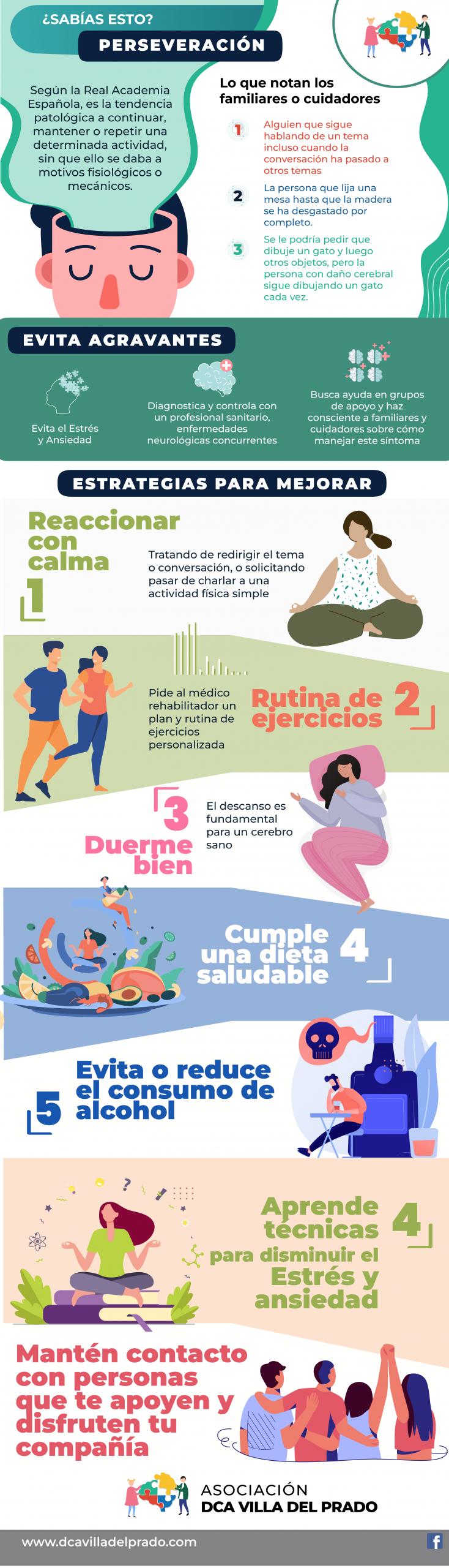Con esta infografía vamos a tratar de resolver algunas de tus dudas sobre la perseveración y lo que supone en caso de Daño Cerebral Adquirido.